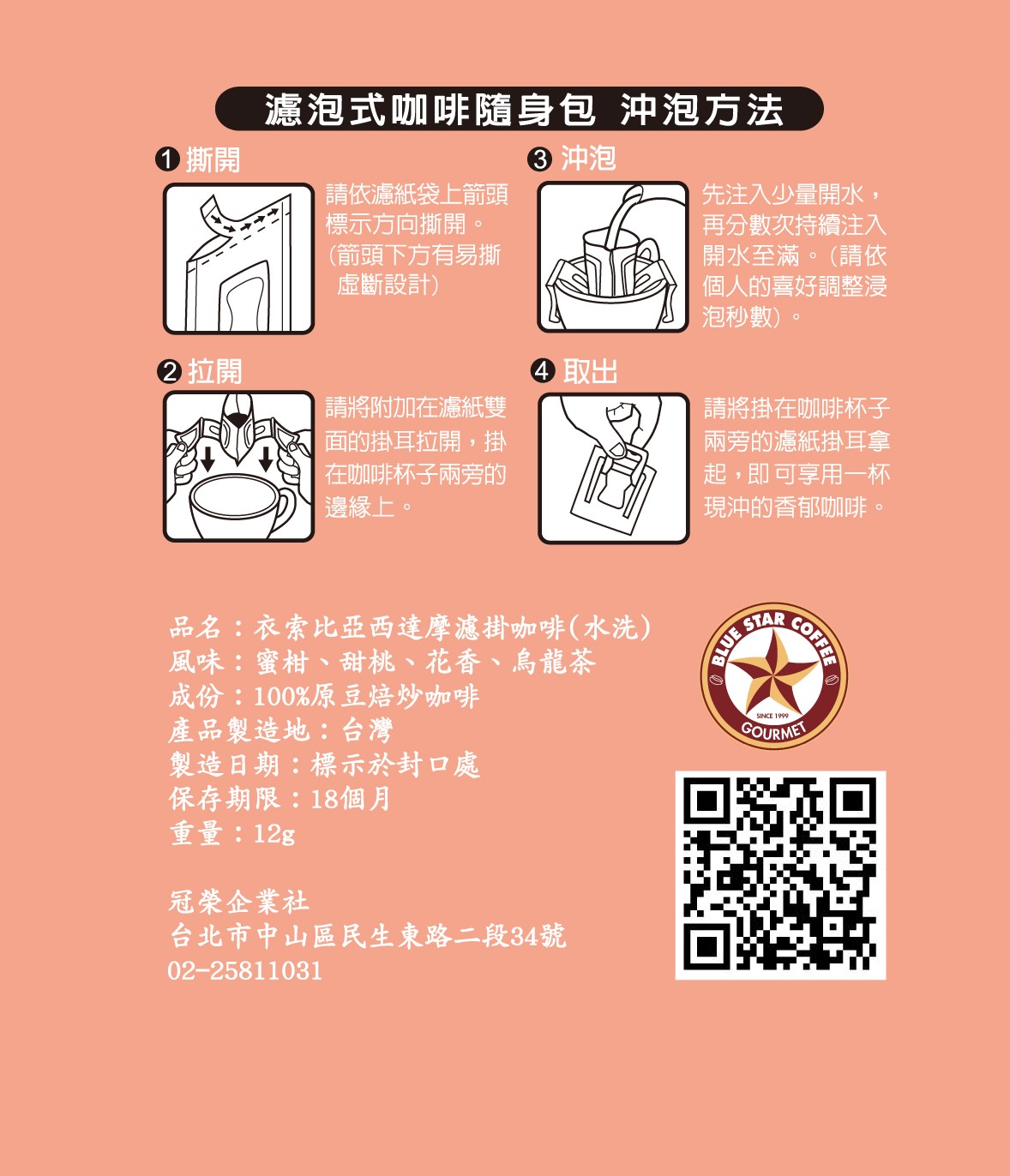 簡介: 高g重掛耳包風味更足 方便濾泡、快速簡便 成分:100%原豆焙炒咖啡 風味描述: 莓果、熟果、蜜柑、甜桃、烏龍茶感 口感: 烏龍茶感 規格:12g x 10入 / 盒 保存方式:避免高溫潮濕及陽光直射